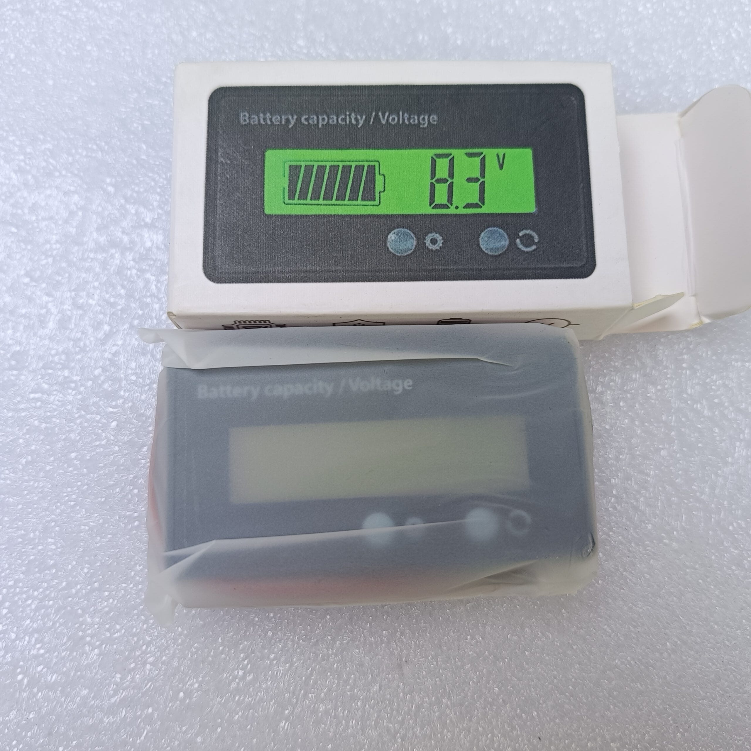 The Battery Capacity Voltage Meter can not only measure the battery voltage but also the capacity, show you with percentage. The battery monitor is designed with a high-quality LCD, LCD screen with green backlit offers a clear and bright display from every angle. Equipped with a PVC film, the surface is waterproof. Long service life button with comfortable hand feeling. Built with buckle, free of screw installation. Battery meter can be applied to portable mobile equipment, electron mobile, balance car, cleaning machine, measuring equipment, etc.